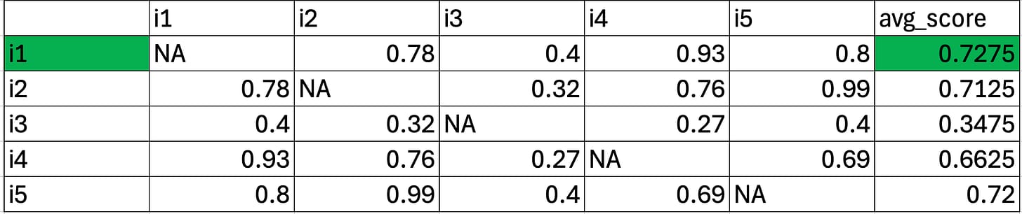 Here, i1, i2,…,i5 is the iteration counter. As we can observe, the average of the similarity score is the highest for i1. That tells us that, with the same prompt, i1 had more similarity with the other prompt responses than the rest. So, i1 is the safest bet, i.e., the “least random.” Whereas, i3 might be “the random” response which is totally different from other responses.